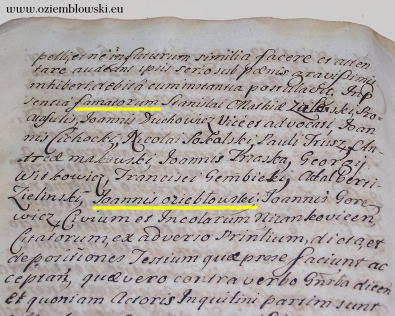 Jan Oziemb³owski, Ni¿ankowice, rok 1712 Documents about Oziemb³owski Families: Townsman Jan Oziemblowski, 1712 |