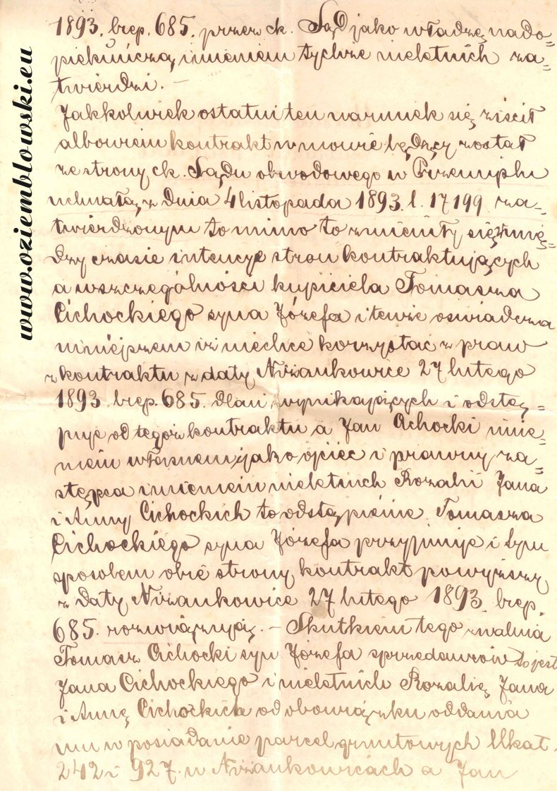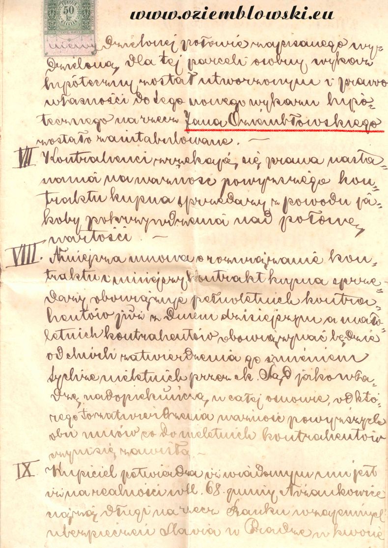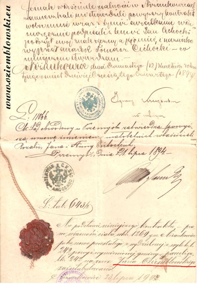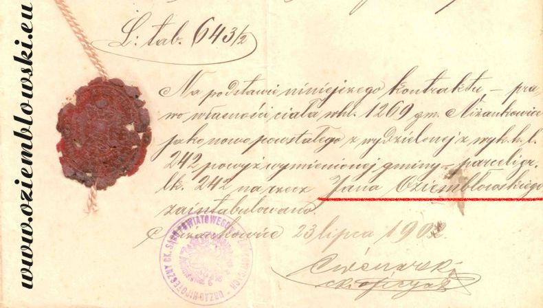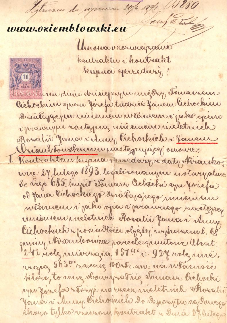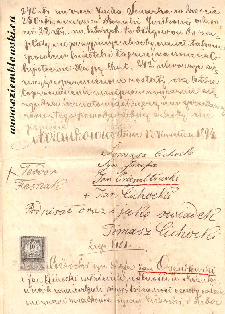 Jan Oziemb³owski, Ni¿ankowice, rok 1894 Documents about Oziemb³owski Families: Townsman Jan Oziemblowski, 1894 |
