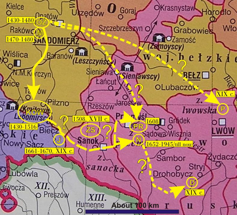 _Головна сторінка > Miграції Озємбловських (Oziembłowskich) > "Південно-східні" мiграції з Озємблова (Oziembłowa) з XV століття |